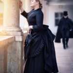 Rock wurde erstellt mit Schnitt „wash“ Überrock 1884 TV 362. Das Oberteil basiert auf einem altbewährten Schnitt von dem ich noch nicht mal mehr weiß wo er her ist. Hut, Accessoire ohne historischen Hintergrund, alles „ai gusto“