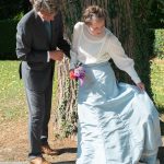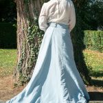 The skirt was part of my wedding outfit; I married Frank on 19 September. My mother made the skirt (I did not have the time to do it). As it had to be festive, we opted for the sweep version. The blouse I owned already, it is by Noa Noa; only I swapped the buttons for pearl buds. The fabric is the light blue ribbed silk from Renaissance Fabrics: https://www.renaissancefabrics.net/product/light-blue-ribbed-silk/ The fabric for the under skirt I found on Sartor: https://www.sartor.cz/5887-otoman-cream.html photo by: Eveline Bouttens – www.ebouttens.be