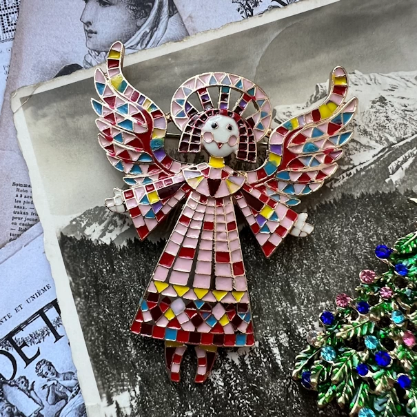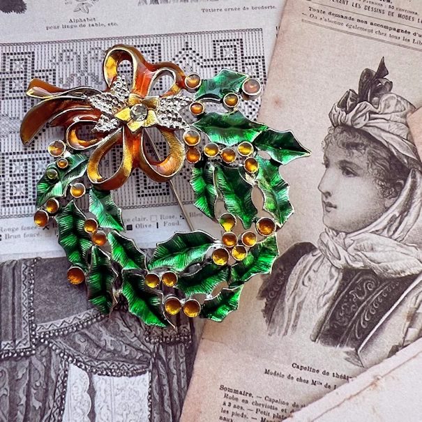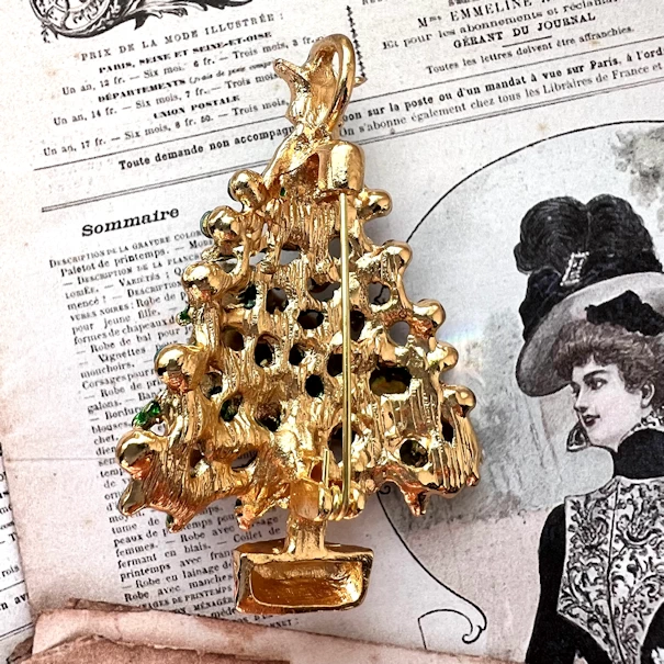 Enamel Christmas Tree Brooch and Pendant with Rhinestones