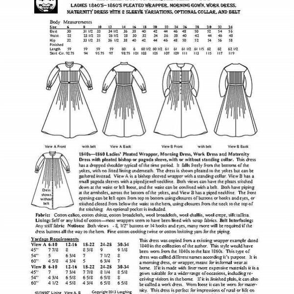 Pleated Wrapper, Work-Dress, Morning Gown or Maternity Dress 1840s-1860s (LM120)
