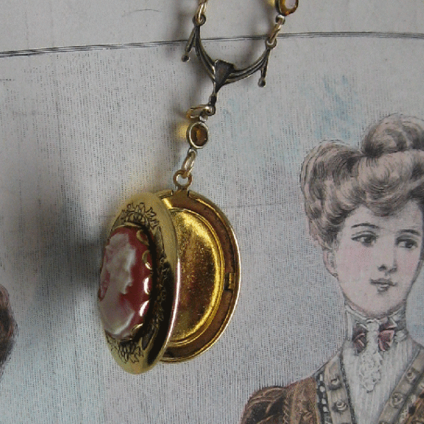 Victorian Cameo Locket Necklace coral