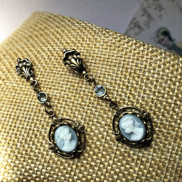 Victorian Cameo Drop Earrings sapphire blue