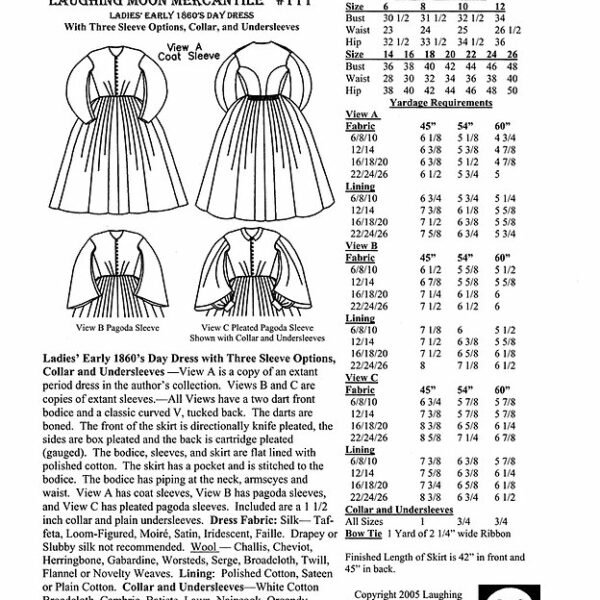 1815-1825 Regency Gown with 5 Sleeve Optoins and 2 Skirt Trims (LM138)
