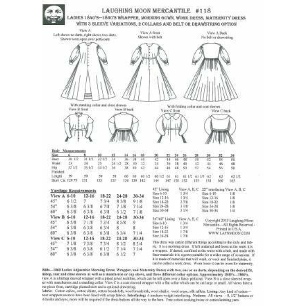 Mantelkleid-, Arbeits-, Besuchs- oder Umstandskleider mit Falten 1840-1860er Jahre (LM120)