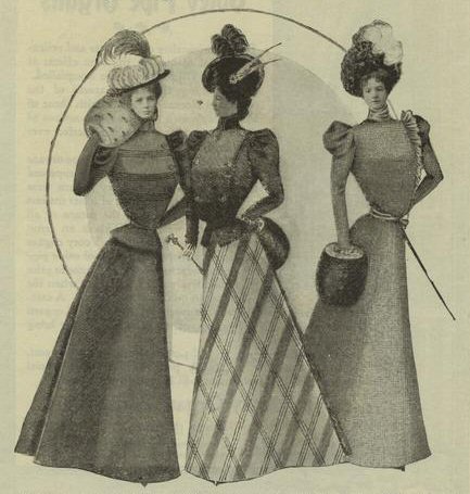 Pattern for two bodices representing the tailored and frilly styles of the Gay 1890s. The small gigot sleeve is particularly attractive to create a broad shoulder line, which in turn gives the illusion of a small waist.