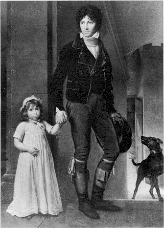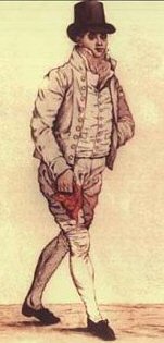 Der junge Incroyable oben links trägt einen Spencer mit äußerst kurzen Schößen, während Isabey (links im Bild mit seiner Tochter, von François Pascal Simon Gérard, 1795) ein Modell gänzlich ohne Schöße zum Jagdoutfit kombiniert. Ein Zylinderhut und Weste sind unerlässlich.