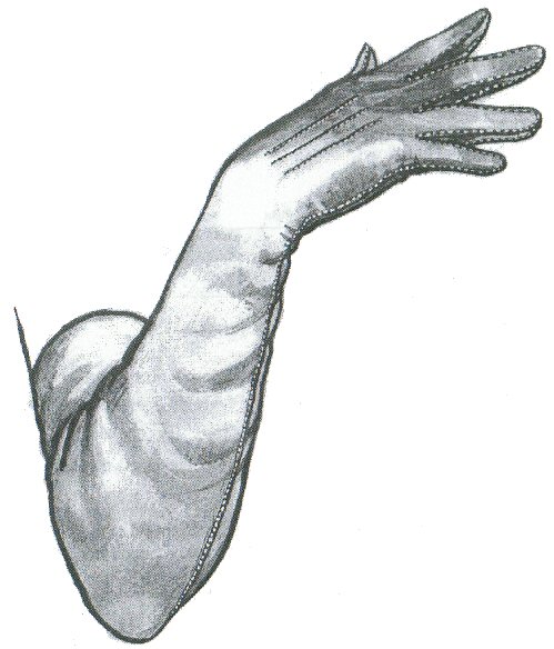 Long classic lady’s gloves. For the formal occasion when you want special one-of-a-kind accessories these classic gloves with points provide a beautiful finishing touch. Whether you need gloves for the opera, a Regency ball or any other official event this is the pattern for you. Contains above- and below-elbow length.