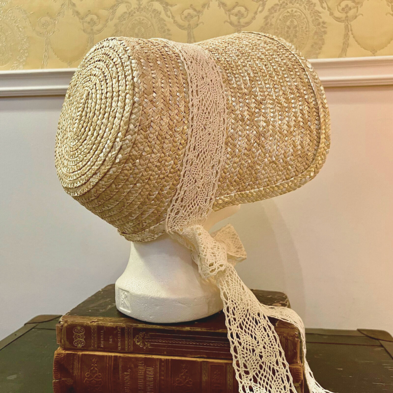 Diese Schute aus 100% Weizenstroh ist ideal für Regency- /Empiregarderoben, lässt sich jedoch auch bis in die 1830er Jahre und das frühe Biedermeier kombinieren. Das Modell wird fertig dekoriert mit einem Band aus 100% Baumwollspitze geliefert, das du nach deinen Vorstellungen kürzen kannst. Weitere Dekorationen kannst du ganz nach Wunsch hinzufügen!