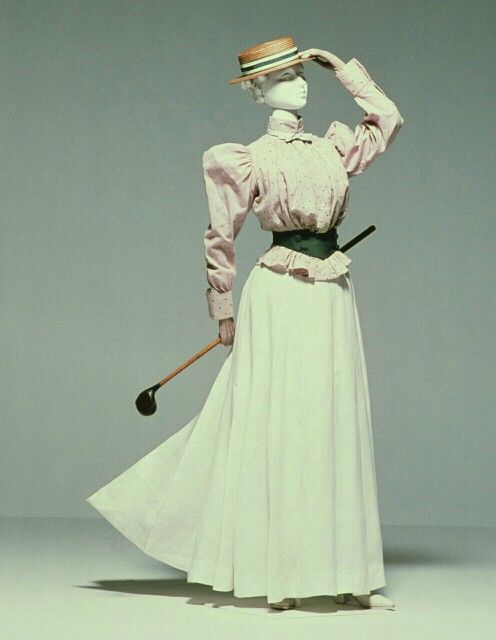 A shirtwaist is the original name for what we would call a blouse today. They are usually for summer or sports wear (think cycling, golfing, hiking!), are unlined and unboned and come in a vast array of styles. Shirtwaists start to become popular in the early 1890s and become even more so throughout the next few decades, and are a staple for the working woman and the fashionable woman alike. It can be worn tucked into the skirt, or over the skirt, as desired.