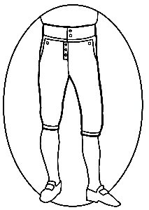 A style of knee breeches worn from early 18th Century until the 1770’s. Buttoned center front and buttoned pockets, no fall.