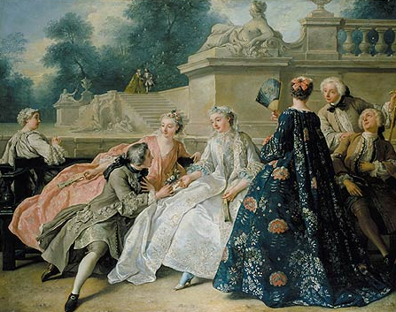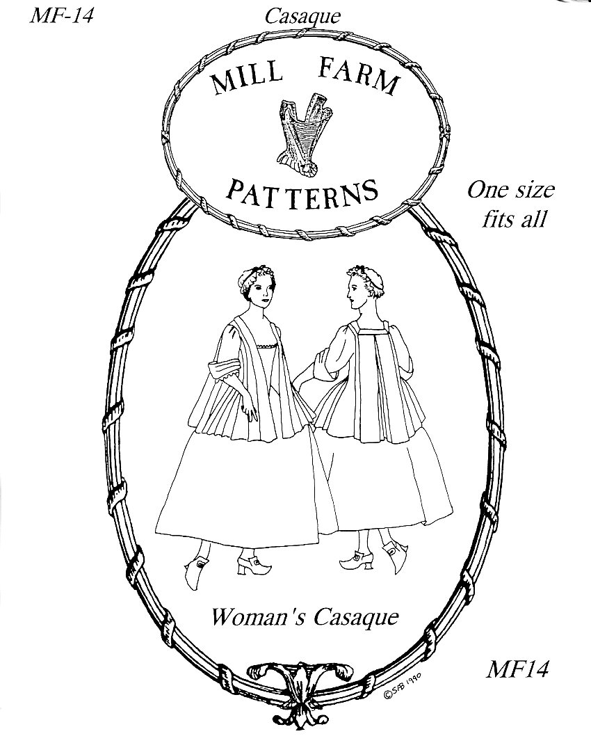 Bei diesem Jäckchen handelt es sich um den direkten Vorläufer der Robe à la Française. Es wird nicht so körpernah gearbeitet wie die spätere Française, sondern umspielt den Körper. Die Packung enthält auch eine Anleitung, um den Jäckchenschnitt mit einfachen Mitteln zu einer Vorlage für eine Robe Battande in voller Länge umzuarbeiten, wie sie z.B. Watteau und De Troy auf zahlreichen Bilder dargestellt haben.