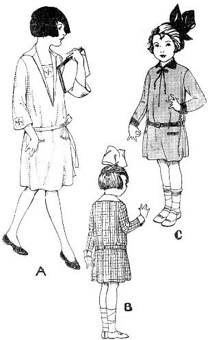 Dieses reizende Kleid macht aus jedem Mädchen im Nu eine Charlestondame! Es lässt sich wahlweise mit 3/4 oder langen Ämeln mit Manschette anfertigen. Das Vorderteil kann am Ausschnitt mit Bändchen geschlossen werden, darunter verbirgt sich ein keilförmiger Einsatz. Zwei Tascheneingriffe nehmen all die Dinge auf, die eine junge Dame mit sich herumtragen muss. In deutscher Sprache!