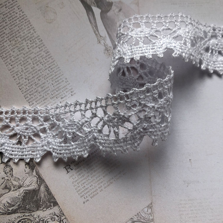 Delicate white bobbin lace, very versatile. Suitable for historical undergarments, dresses, blouses, skirts, cushions, etc.