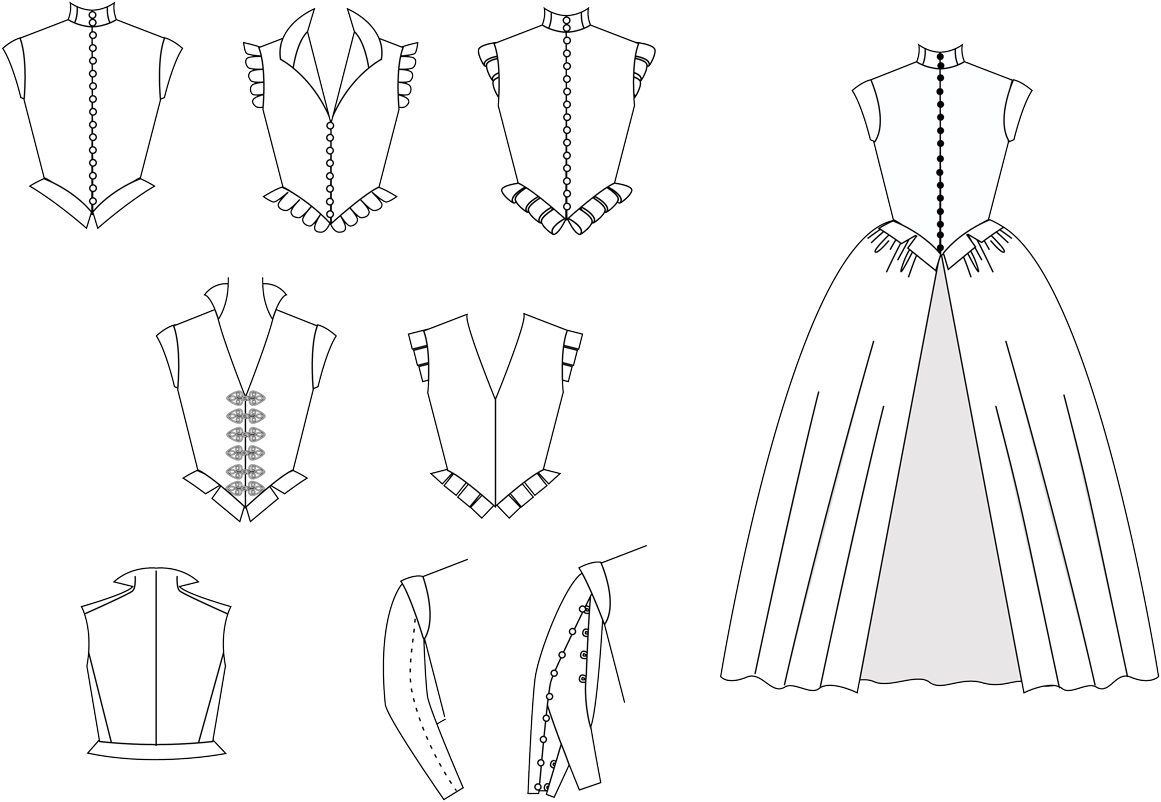 Doublets were worn layered over bodices and skirts, and sometimes over other doublets. We have also included instructions for making it with an attached open-fronted skirt, to create what was known a a close bodied gown, to be layered over other garments.