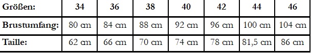 Dieser Artikel ist erhältlich in den Größen 34-46. Bitte wähle dein Korsett gemäß der folgenden Maßtabelle aus: