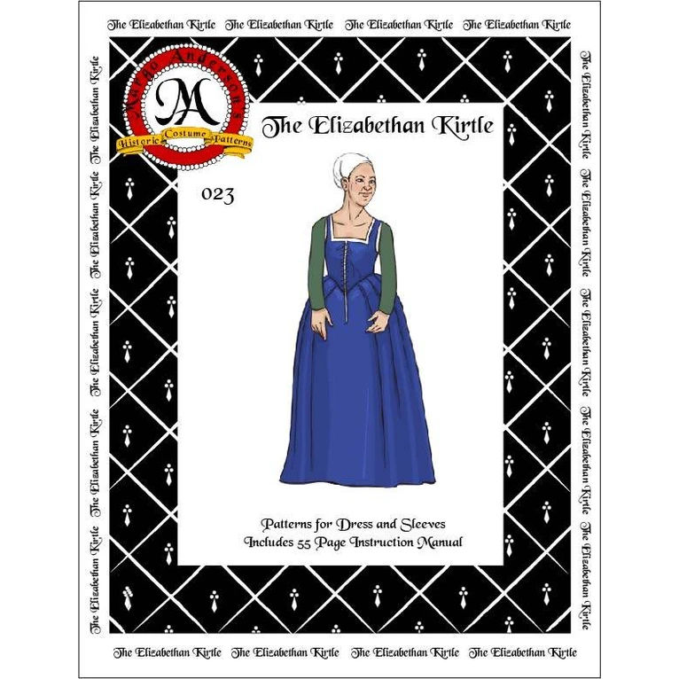 Pattern for a basic woman’s dress of the 16th century called a “kirtle”. It can be used for all classes, depending on ornamentation and the garments layered over it.