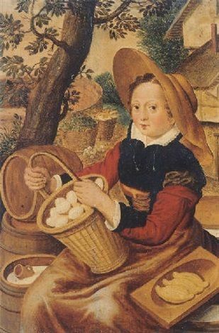This painting of a woman by Joachim Beukelaer (late 16th C.) shows a black Partlet and the high standing collar of the smock underdress.