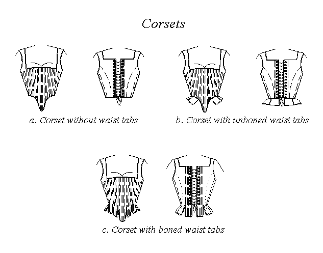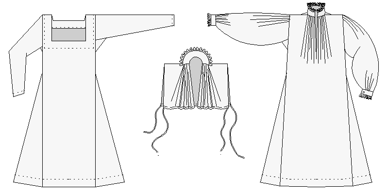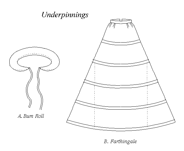 The package includes: Two styles of smocks, Partlet, corset with three style variations, Farthingale (hoop skirt) and bum roll.