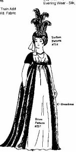 Overdress with open front and back pleats, a so called “Pelisse”. Similar gowns can be seen in various Jane Austen movies. Makes a beautiful ballgown with the matching turban which is available in our “Headwear” category.