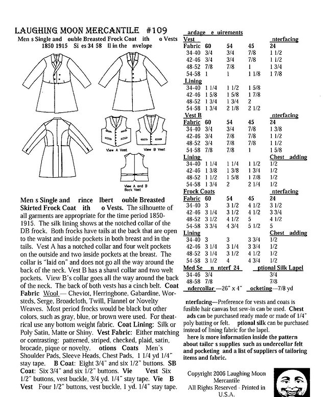 Schnittmuster für viktorianische Herrengehröcke und Westen, aufgestellt nach zeitgenössischen Originalen.
