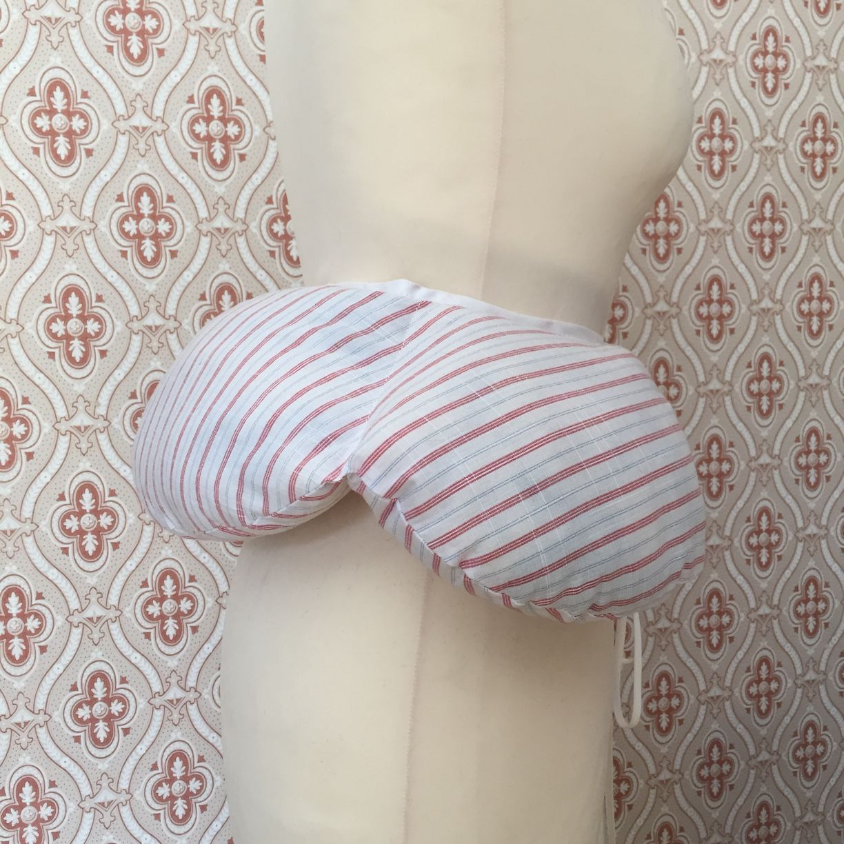 Dieses Hüftkissen passt perfekt unter alle Kleider, die ein wenig mehr Unterstützung benötigen, jedoch ohne den großen Umfang eines Reifrocks auskommen. Ideal z.B. zur Open Robe, zu Jäckchenmodellen, zur Robe á la Polonaise oder zur Française! Das Kissen verleiht Rock und Kleid Volumen ohne störend zu wirken. Ein echter „Weiberspeck“ eben, der sich zur Freude seiner Trägerin auch noch ganz leicht wieder ablegen lässt!