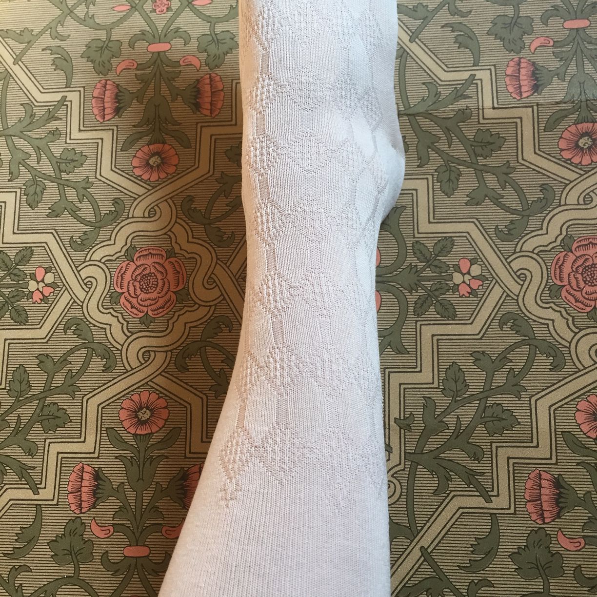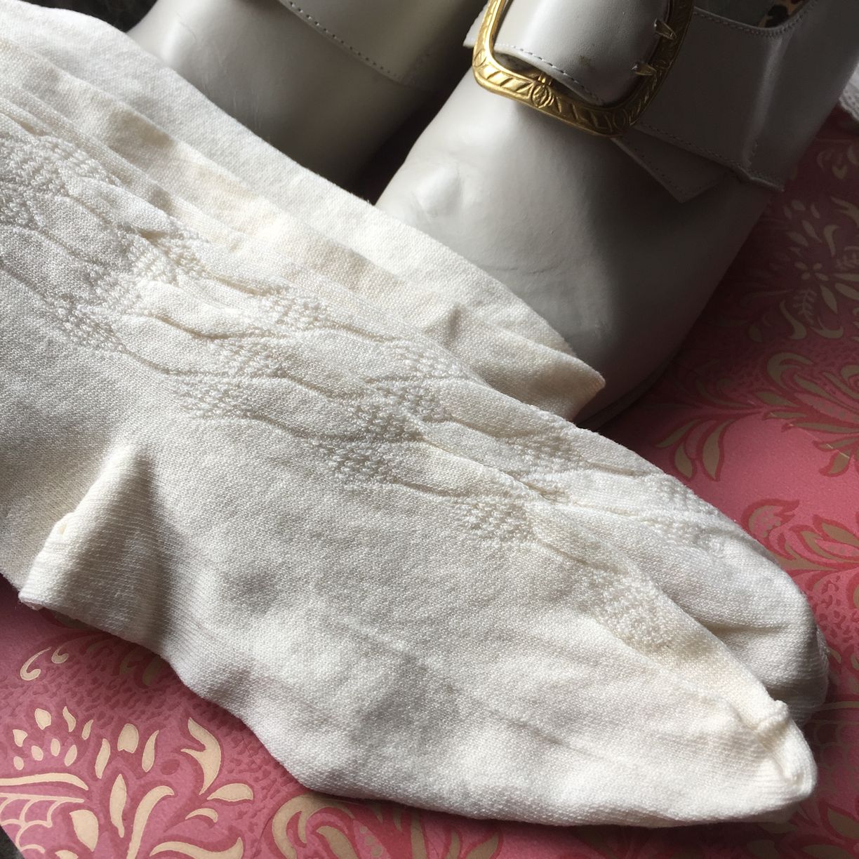 Beautiful pure silk knit stockings. Our ivory or black colored stockings are suitable for every elegant lady from early 19th-20th century. They feature an openwork motif covering the foot up to mid-calf. Comfortable to wear at a length of c. 81 cm = 31″ (unstretched). No more modern stockings barely covering the knees!