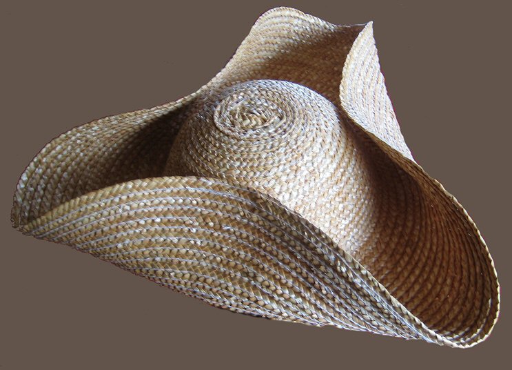 Ideal sun protection and period correct accessory: Our 18th century large tricorne hat is made from 100% natural straw. Suitable for working class depictions as well as for a fashionable stroll in the park. Decorate it with cockades or bind the edges with a stylish trim to make the hat a unique creation.