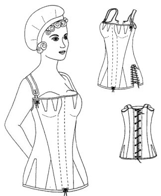 Schnittmuster für ein Korsett, das dir die gerade, schmale Silhouette des frühen 19. Jahrhunderts verleiht! Formt ein Dekolleté nach zeitgenössischem Geschmack: ein eingearbeitetes Blankscheit trennt die Brüste optisch voneinander (lässt sich entnehmen), durch Zwickel gebildete “Cups” stützen sie. Das Modell lässt sich auch als Reitkorsett arbeiten! Mit historischen Hintergrundinformationen und ausführlicher Nähanleitung. Trage dein Korsett unbedingt über einer Chemise (z.B. KK6103), um Druckstellen und Scheuern zu vermeiden!