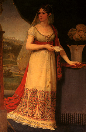 The perfect addition to your Regency wardrobe! Cashmere shawls were early 19th Century essentials. They were also made into dresses as the picture on the left shows.
