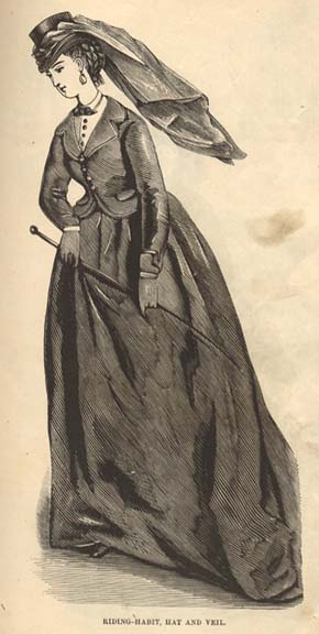 Schnittmuster für eine Klassische Reitjacke der 1860er Jahre mit ausgestelltem Schoß und Knopfverschluß. Ergibt mit dem passenden Rock ein wunderbares Reitkostüm. Aber auch wenn Sie keine Reiterin sind, werden sie mit dieser Jacke elegant aussehen!