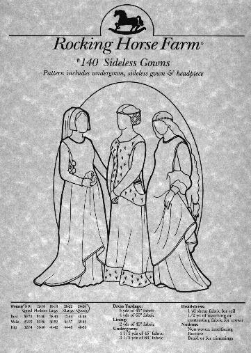 3 gowns in one package! You can use the patterns for a long or short version of the overdress, with or without lacing. Also included are patterns for the headdresses and undergown!