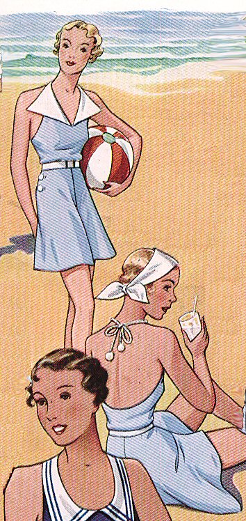 The beach is yours with this fabulous, easy to make playsuit! It consists of a halterneck top and shorts which are joined at the waist, but will also make perfect separate garments! The shorts are buttoned up and the top is tied at the neck.