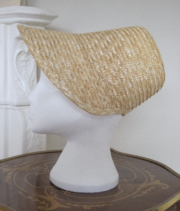 Made exclusively for us, this 100% natural straw bonnet is just perfect for your Regency / Empire wardrobe, but also goes well with later styles up to the 1830s! The hat should be held in place with a ribbon as it is designed to sit rather high on the head. We also carry matching ribbons and feathers to trim your bonnet!