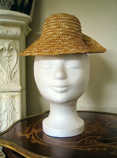 Elegant hat made from 100% natural straw with turned up brim at the back. The ideal addition to your Victorian wardrobe. It is not meant to fit down on your head, but needs to be worn with a hat pin. Trim as desired with ribbons and feathers.
