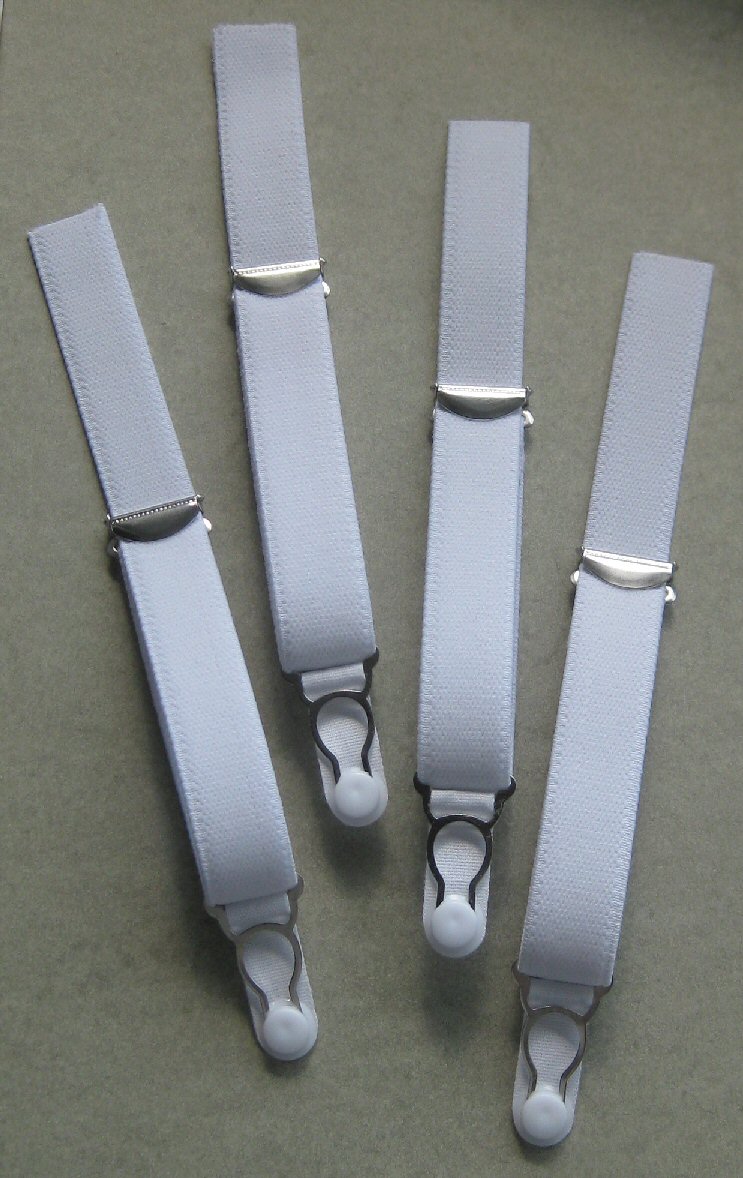 Elastic suspenders, suitable for corsets, corselettes and garter belts from 1900 onwards. Cover them with silk satin ribbon for a flamboyant look!