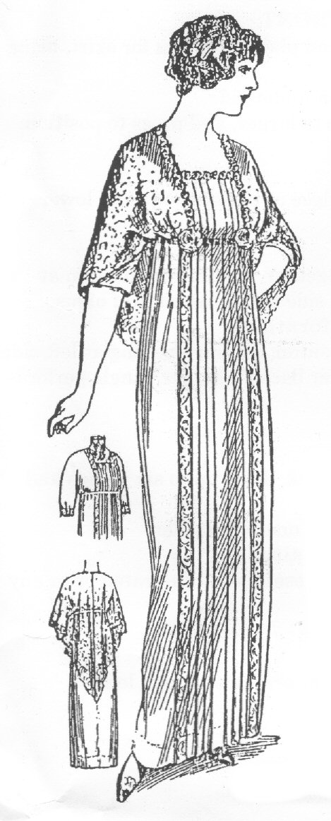 An original period pattern as published by May Manton’s Patterns, now re-edited by Past Patterns. This versatile and attractive dress is just perfect for afternoon occasions. Essentially a tea gown with two-piece skirt, it can be finished with or without shawl drapery, with square or high neck, elbow or three-quarter sleeves. Its many options make the style suitable for evening wear as well!