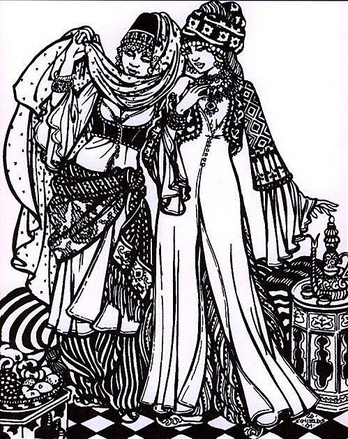 This beautiful pattern is based on 19th C. Osman fashions and contains a coat dress (Entari), jacket and vest. These traditional vestments are easy to make. They suit the Osman lady perfectly, but are also quite appropriate for fashionable late 18th-19th C. European ladies, who indulged themselves in romantic oriental styles. Colourful fabrics, elaborate decorations, embroidery and pearl trimmings make this style iconic.
