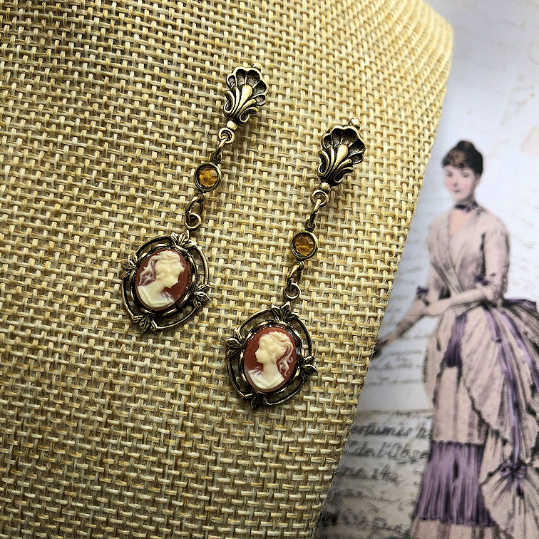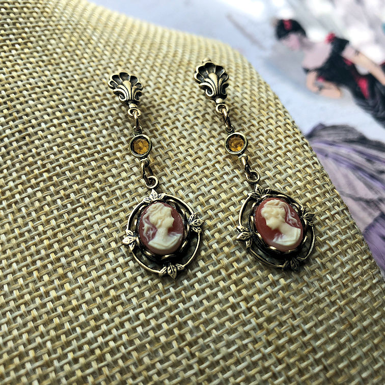 Attraktive karneolfarbene Kameen in filigraner Fassungen zieren diese Ohrstecker. Zwei gefasste Kristalle lassen diese Schmuckstücke an deinen Ohren funkeln. Befestigt werden sie mit Steckern in Form stilisierter Akanthusblätter. Der Farbton ist klassisch und passt zu jeder Garderobe. Die Ohrringe sind nicht zu schwer und sehr angenehm zu tragen. Die Stecker bestehen aus chirurgischem Stahl und sind hypoallergen.
