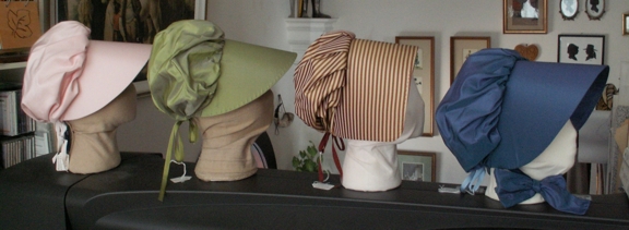 This wonderful pattern includes two day caps which are based on originals, and four bonnet styles inspired by originals and numerous contemporary illustrations. Also included are embroidery designs for View A, as well as three border pattern options for View B. There are four bonnet front shapes, made with pasteboard stiffened brims, and the caul (soft back part) can be attached over or under the front, pleated or gathered. These options alone provide 16 variations, plus there are four sizes of cauls and directions for optional ties.